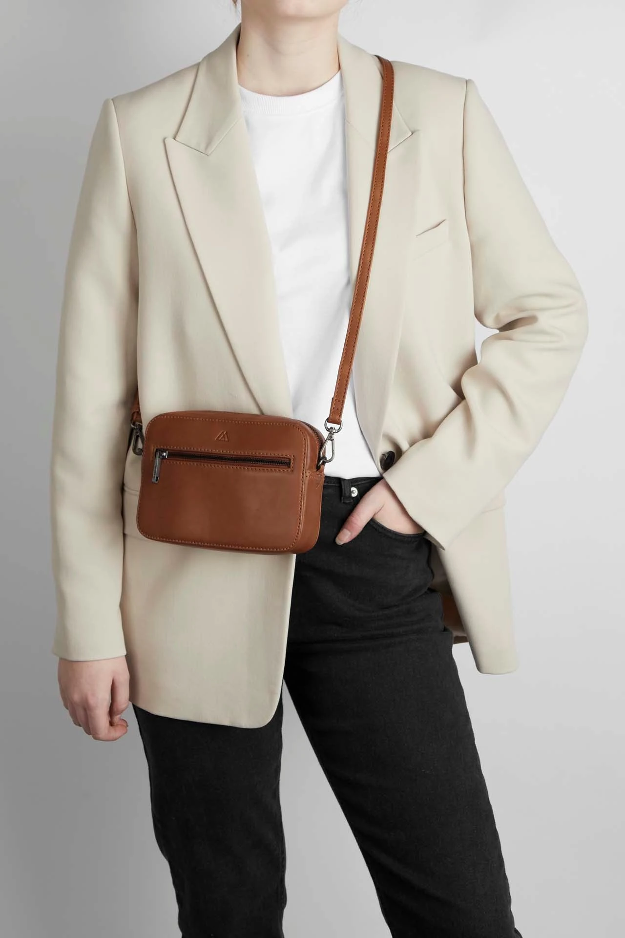 Vegetabilsk indfarvet læder baseret på naturlige materialer. Teksturen og farven kan variere, hvilket er læderets naturlige karakteristika. Denne lædertype får patina i takt med at den bruges. Dette giver tasken et unikt udtryk.