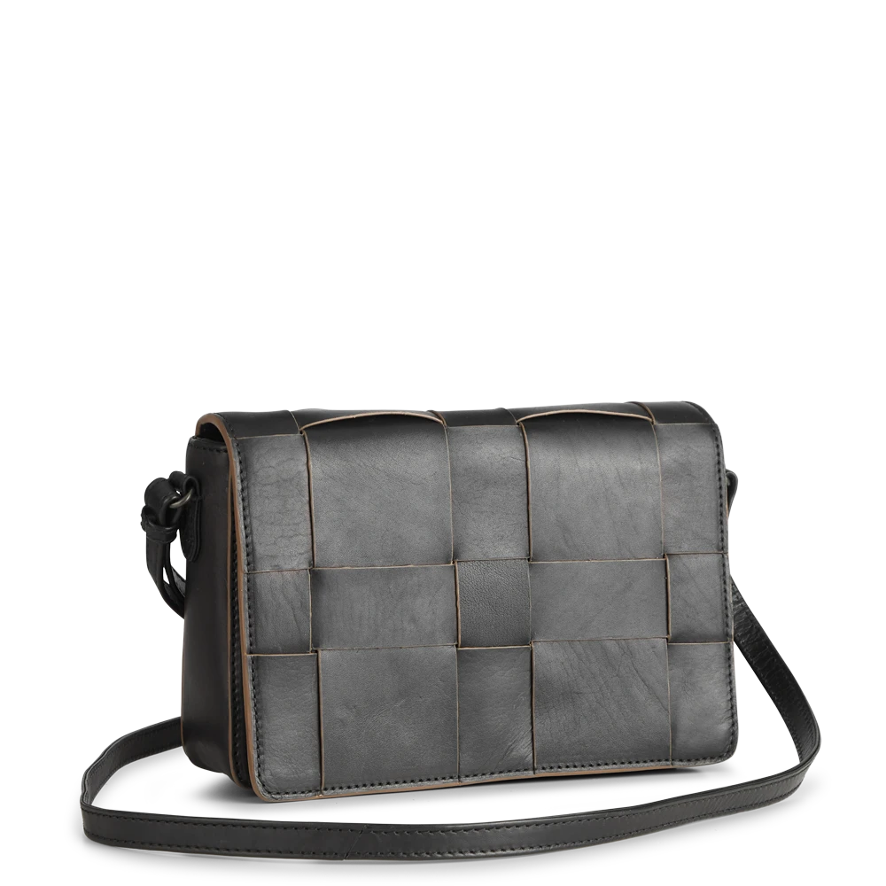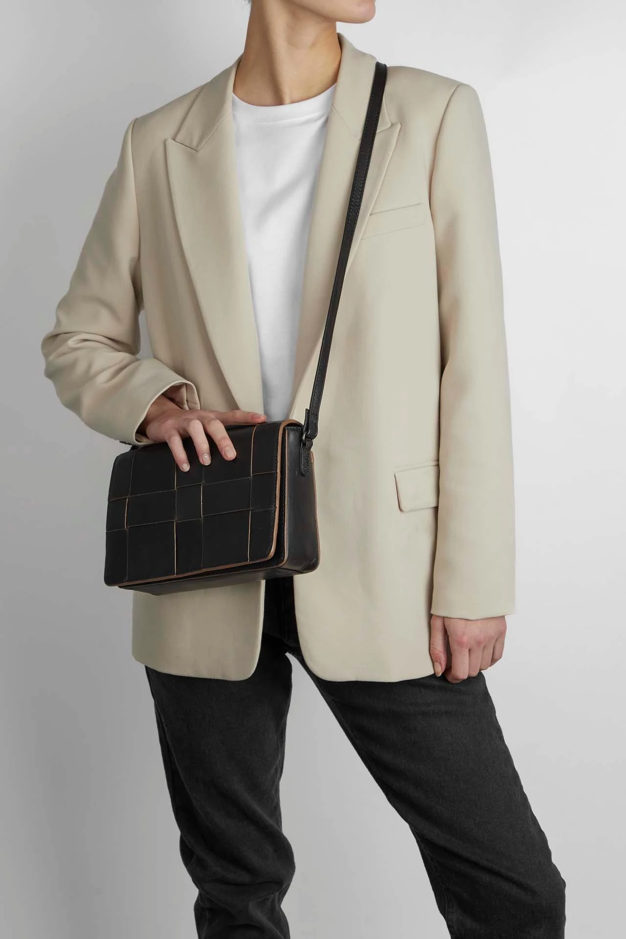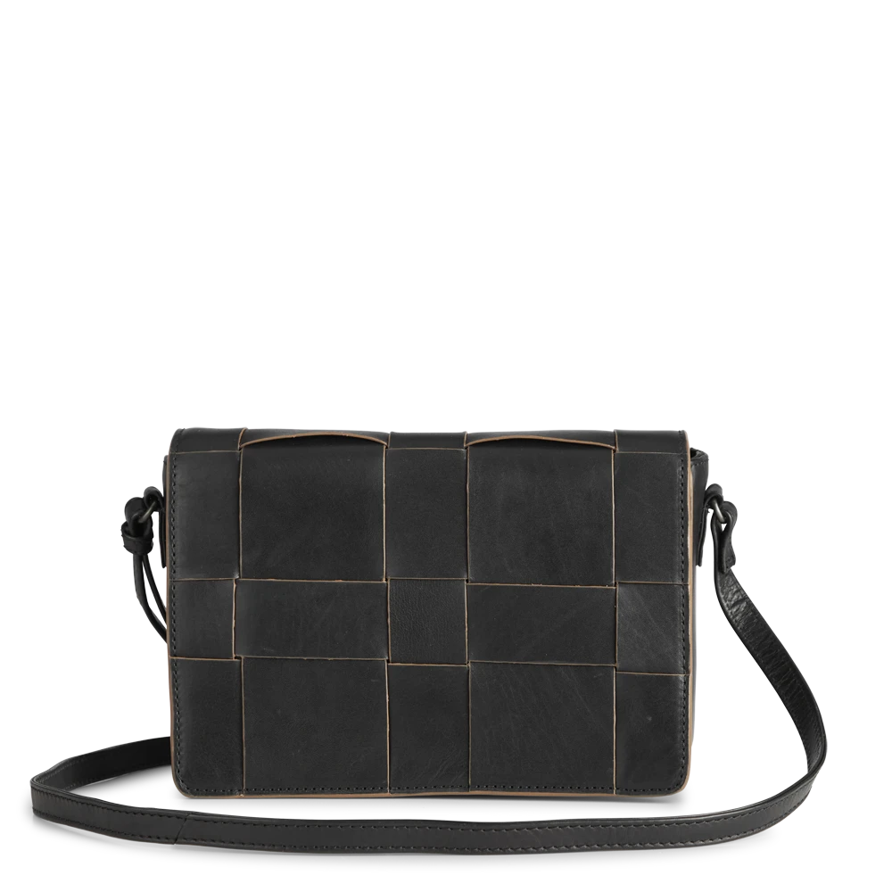 - Håndflettet kalveskind på forsiden med detaljer i caramel