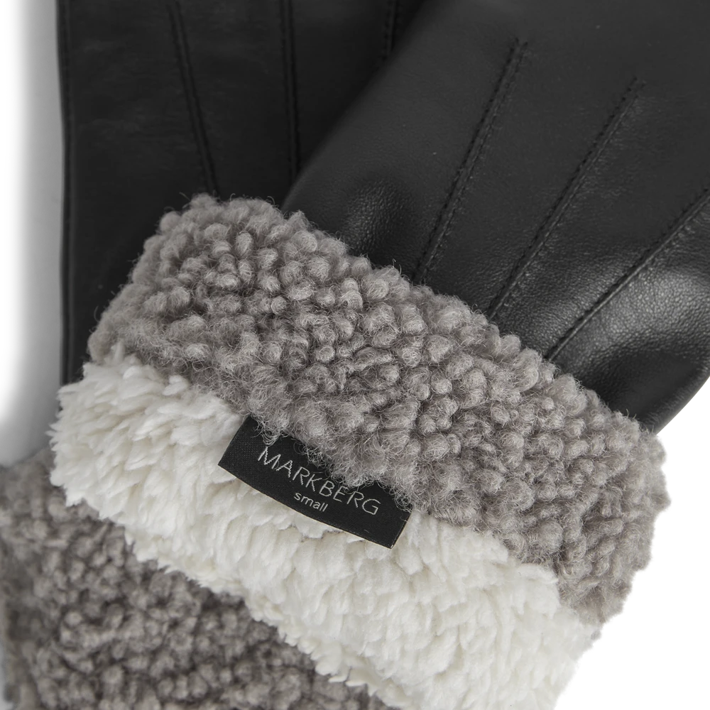 - Luffer i læder kombineret med kunstig pels produceret af 100% genanvendt plastik