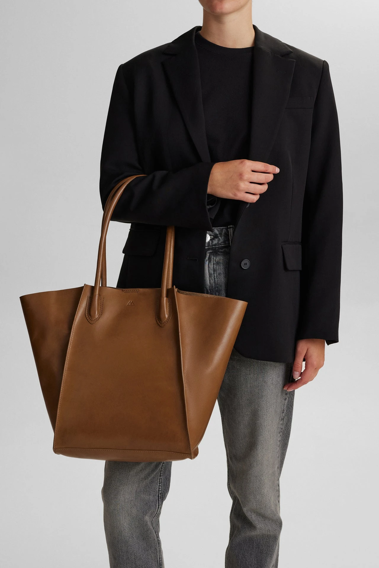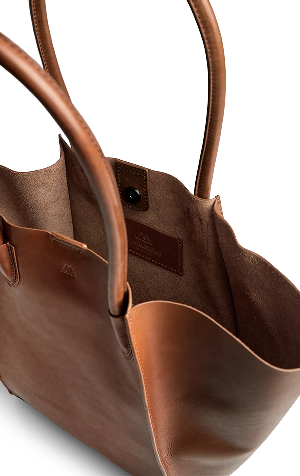 Vegetabilsk indfarvet læder baseret på naturlige materialer. Teksturen og farven kan variere, hvilket er læderets naturlige karakteristika.