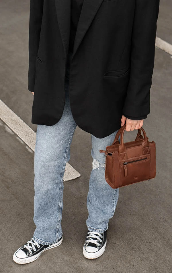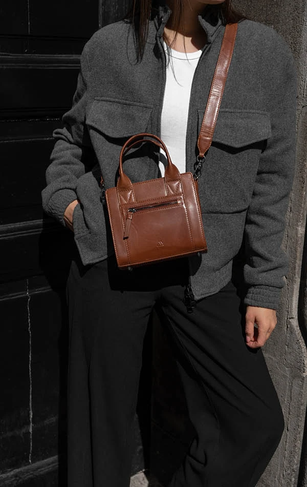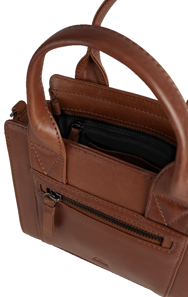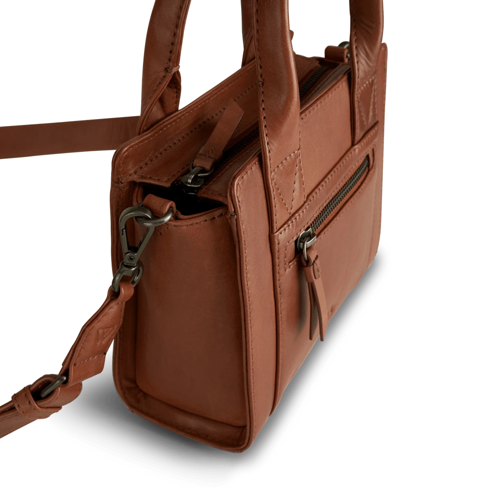 Vegetabilsk indfarvet læder baseret på naturlige materialer. Teksturen og farven kan variere, hvilket er læderets naturlige karakteristika. Denne lædertype får patina i takt med at den bruges. Dette giver tasken et unikt udtryk.