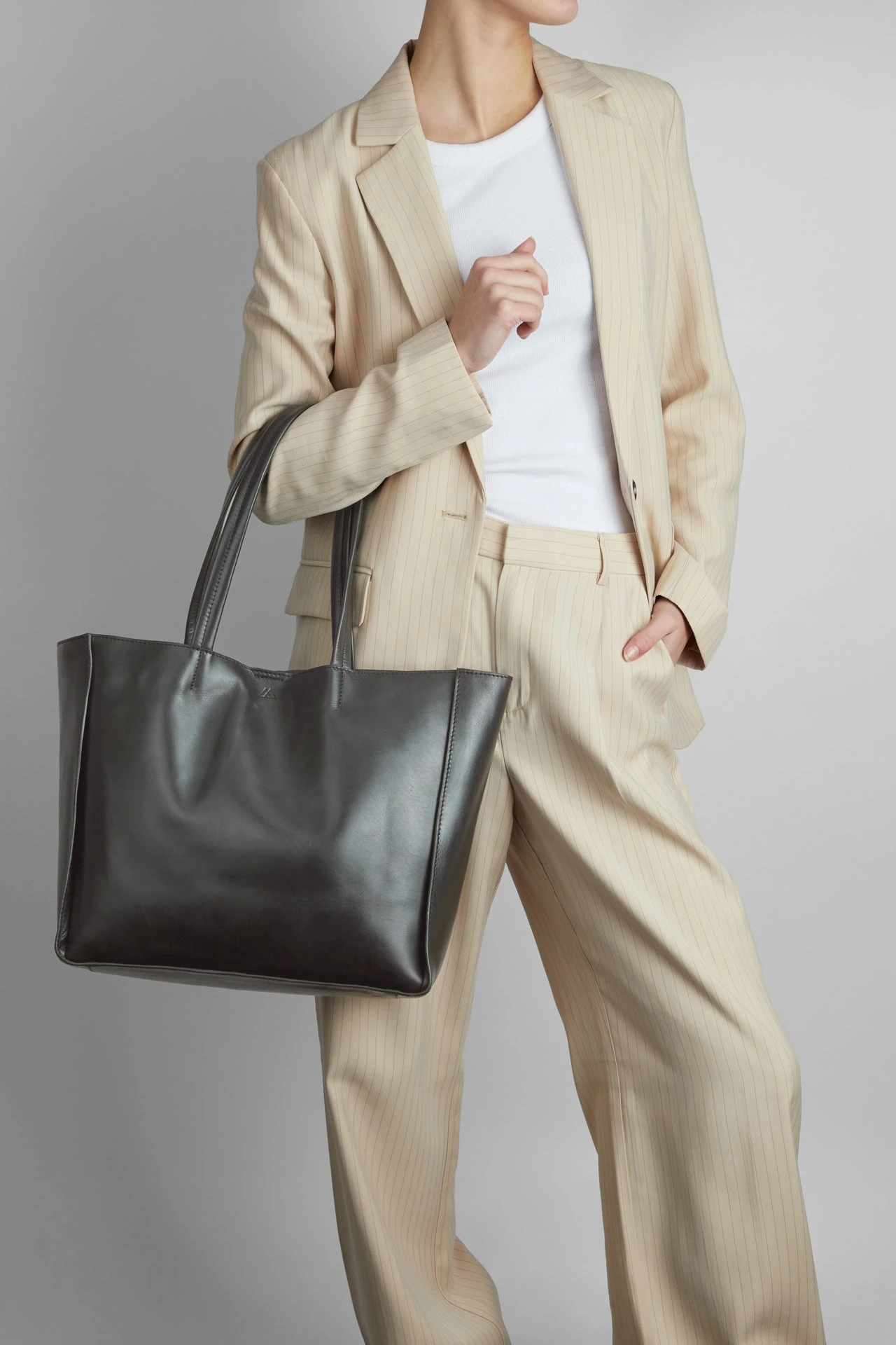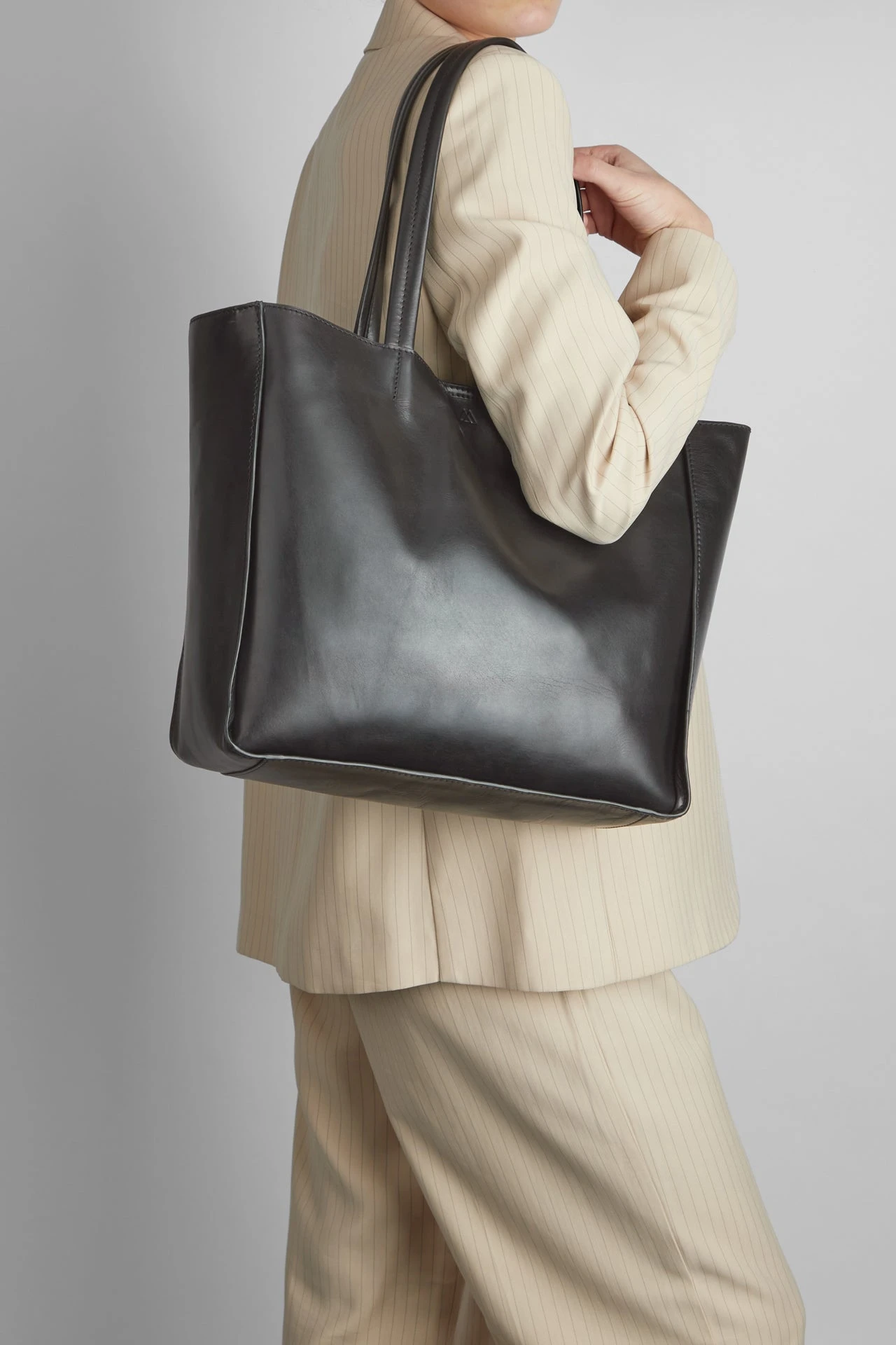 Vegetabilsk indfarvet læder baseret på naturlige materialer. Teksturen og farven kan variere, hvilket er læderets naturlige karakteristika.