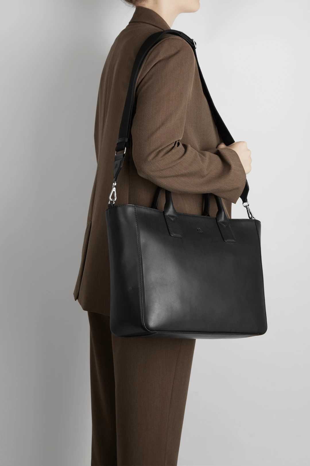 Vegetabilsk indfarvet læder baseret på naturlige materialer. Teksturen og farven kan variere, hvilket er læderets naturlige karakteristika. Denne lædertype får patina i takt med at den bruges. Dette giver tasken et unikt udtryk.