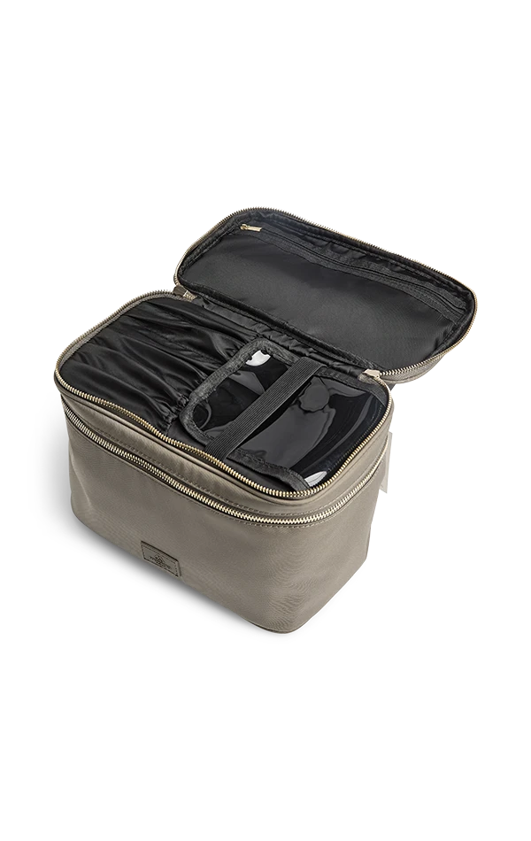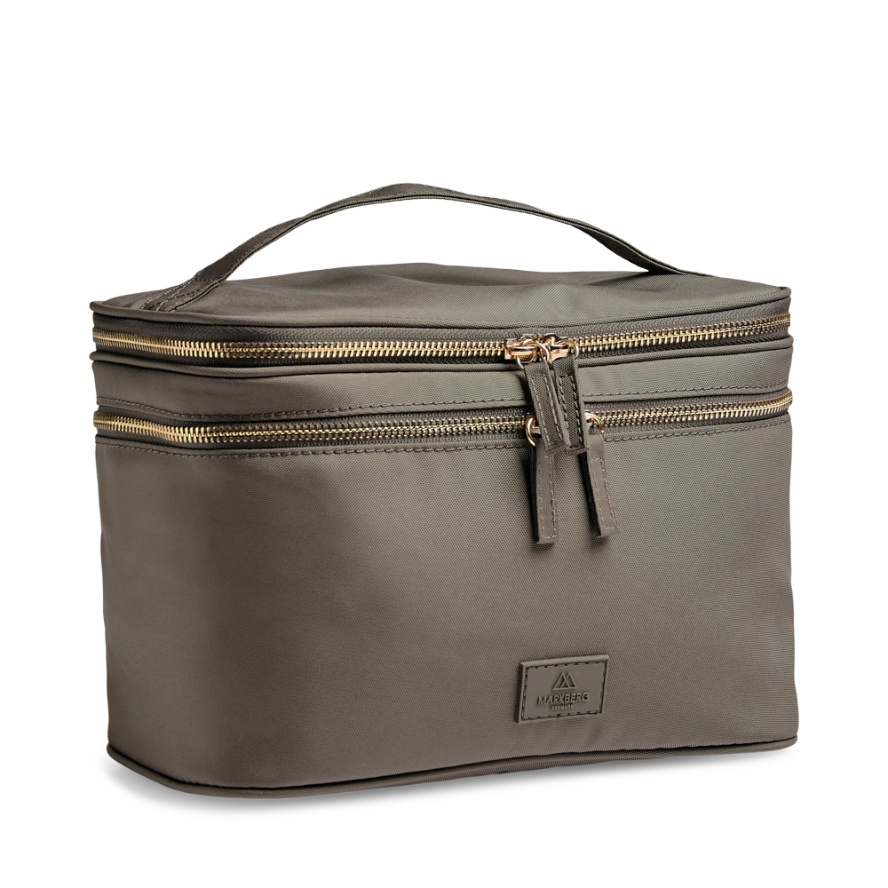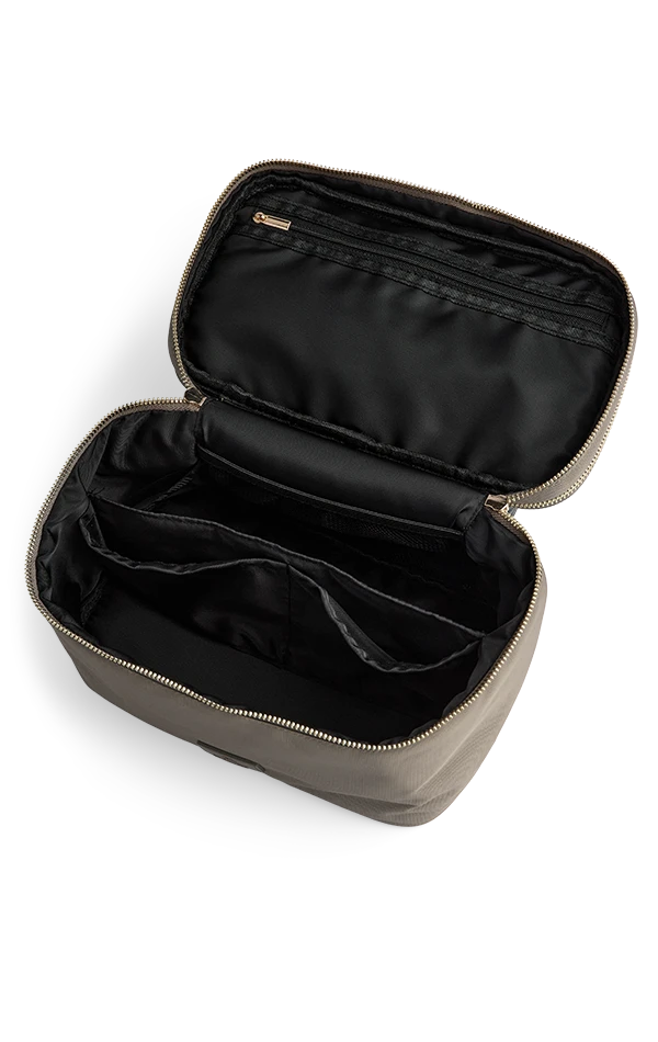 - Lynlåsrummet øverst har inddeling til makeup børster samt en lynlåslomme