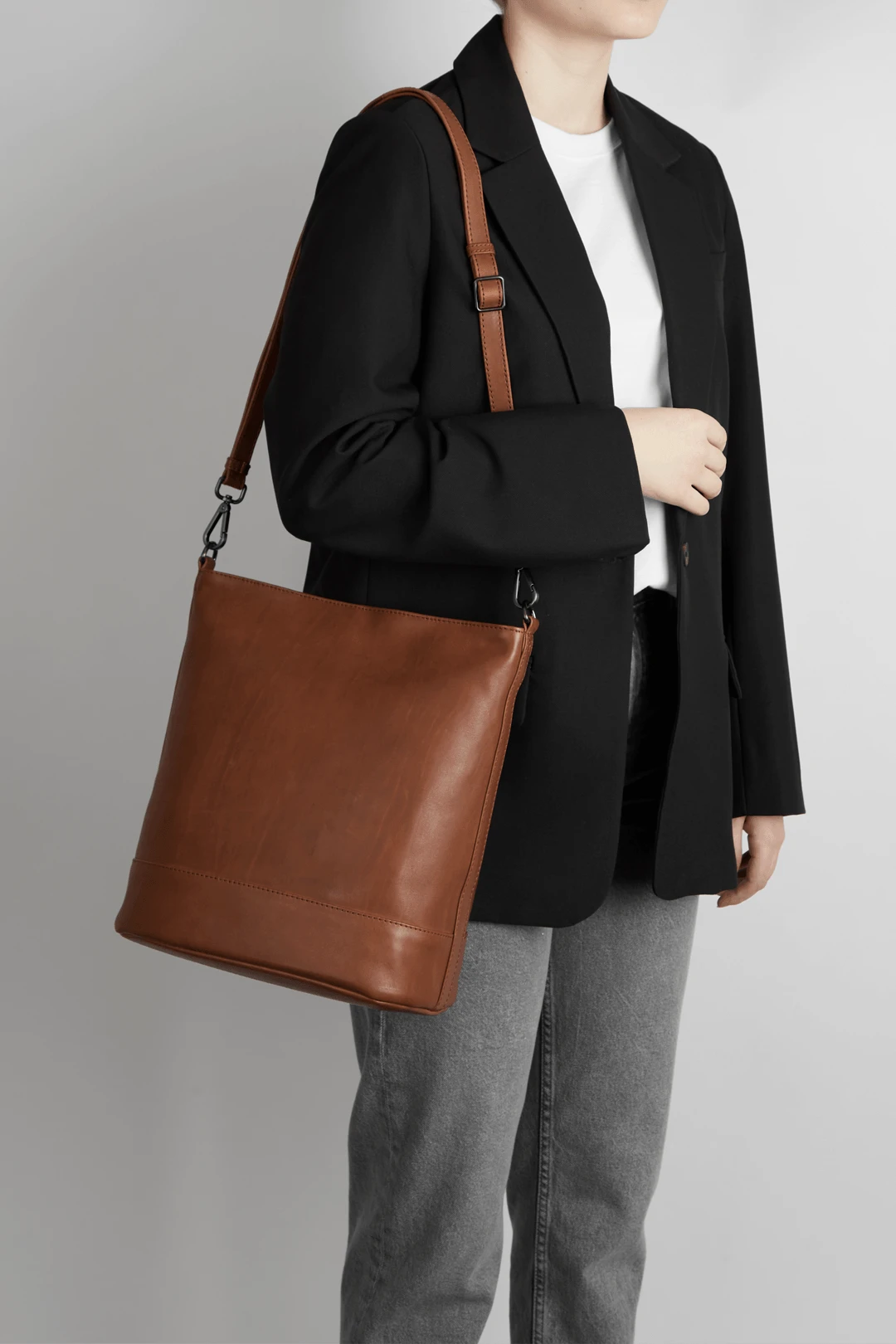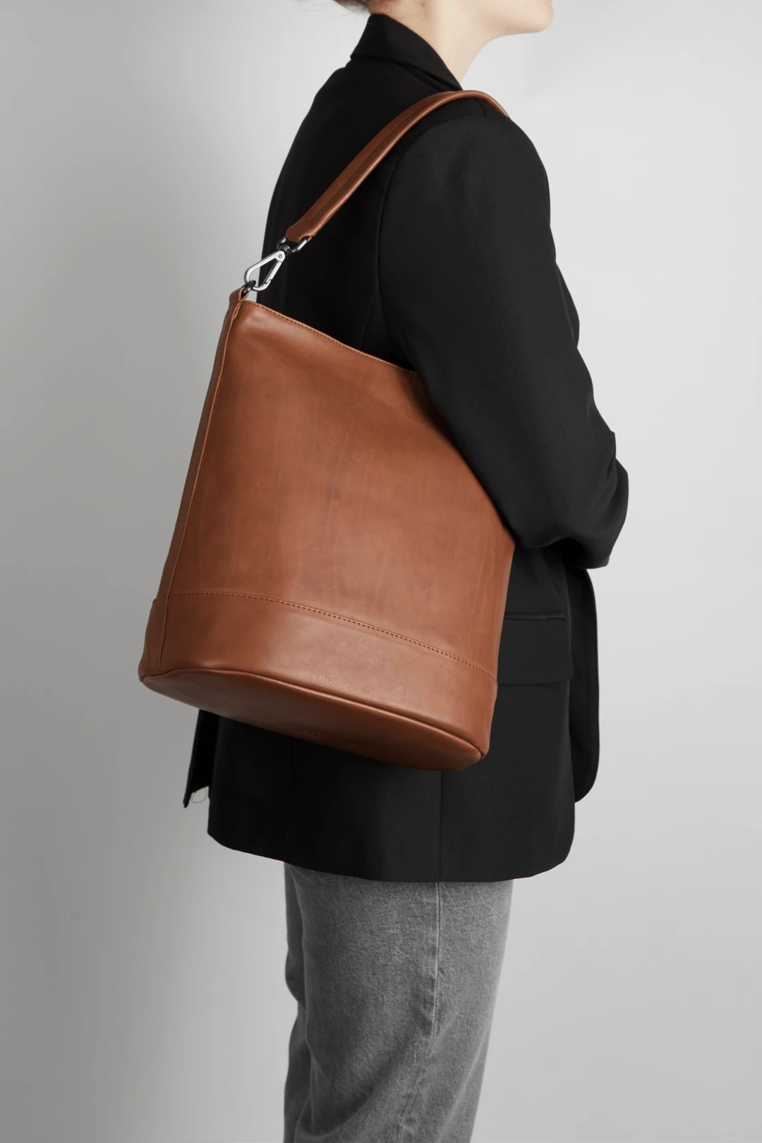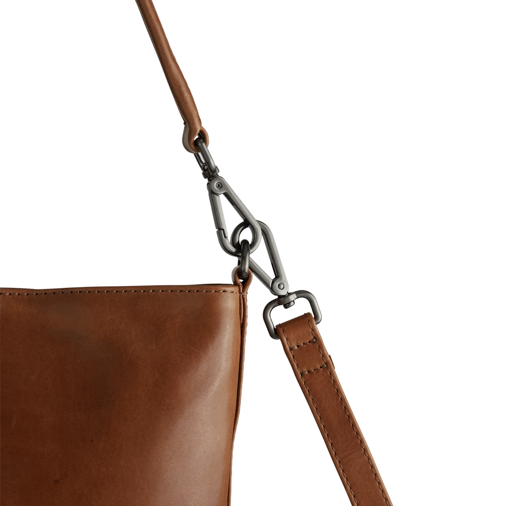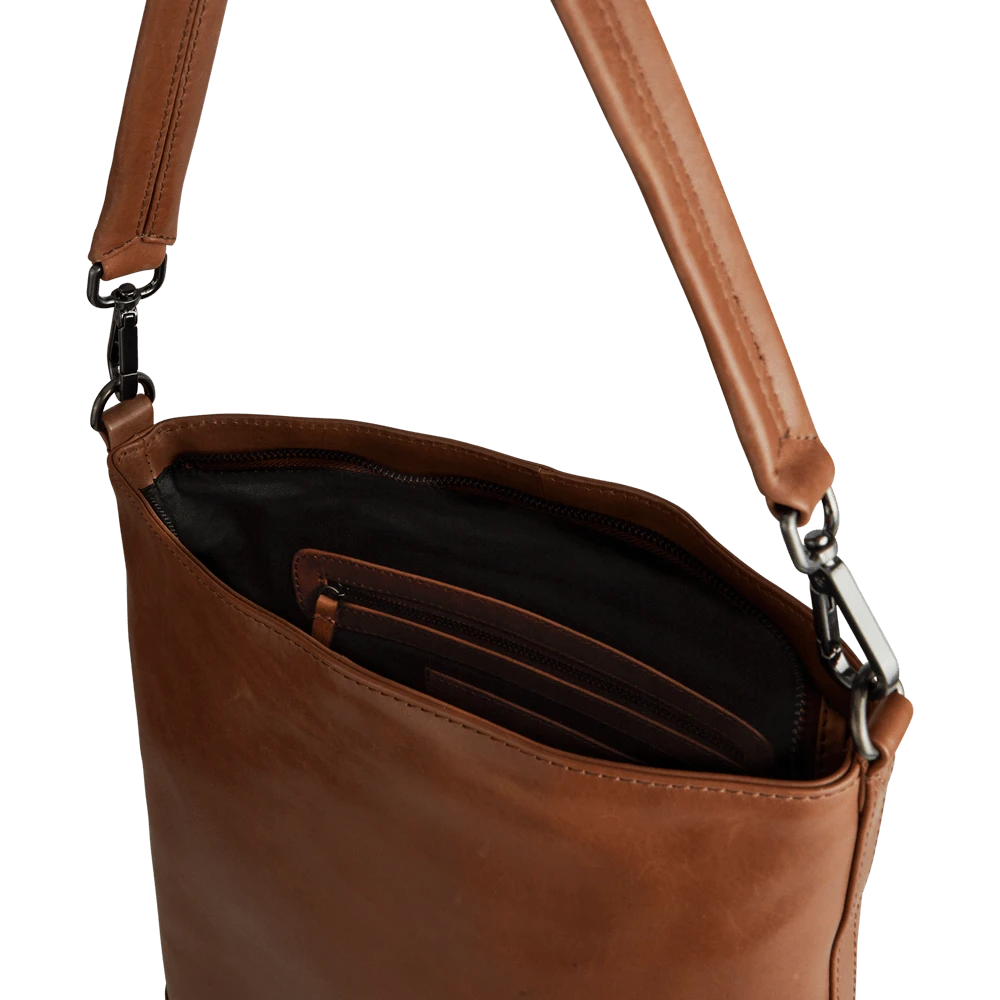 Vegetabilsk indfarvet læder baseret på naturlige materialer. Teksturen og farven kan variere, hvilket er læderets naturlige karakteristika. Denne lædertype får patina i takt med at den bruges. Dette giver tasken et unikt udtryk.